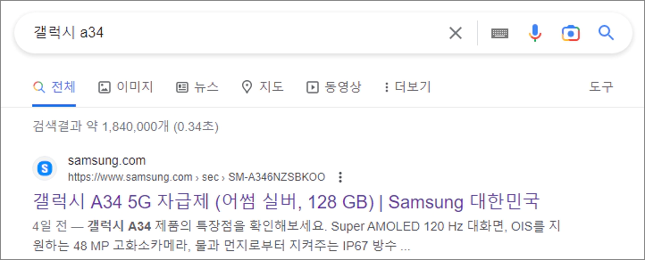 그럼 바로 갤럭시 A34 매뉴얼 파일을 열어보기 위해서 사이트 접속부터 해보도록 하죠. 검색은 간단합니다. 구글에서 갤럭시 A34 검색을 해주세요.