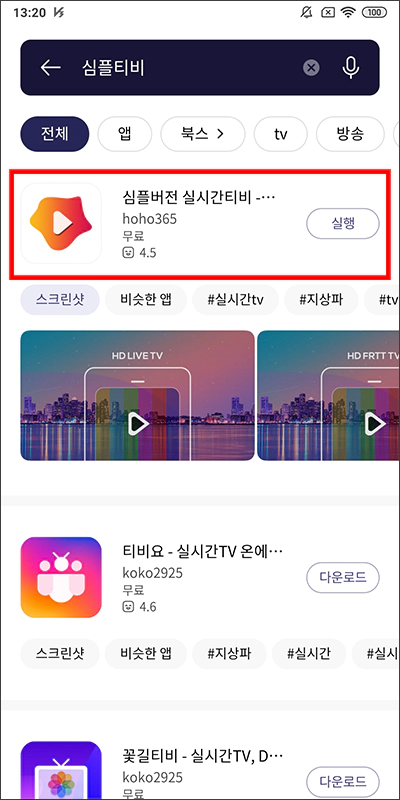 제가 소개하는 심플티비 앱은 구글 플레이에서는 설치가 불가능합니다. 예전에는 구글 플레이에도 등록이 되었던 것 같은데 지금은 원스토어를 통해서 설치할 수 있어요.