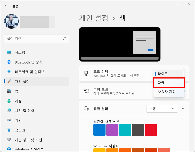 그리고 시스템 설정 사용은 위에 캡처 이미지와 같이 윈도우 모드를 다크 모드로 사용하고 계시는 분들이 선택하시면 되는데요. 개인 설정에 모드 선택을 어떤 것으로 사용하고 있는지에 따라서 메모장 앱 테마도 따라서 변경됩니다. 그리고 앱 테마 외에 글꼴을 메모장 설정 화면에서 빠르게 변경할 수 있게 되었어요. 기존 방법으로 화면 상단 메뉴를 통해서 변경도 가능하지만 앞으로는 설정에서 변경하지 않을까 싶네요.