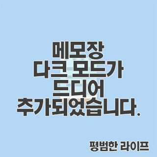 지금까지 메모장을 사용해오신 분들은 알고 계시겠죠. 메모장은 큰 변화 없이 오랜 시간 윈도우 기본 프로그램으로 제공이 되고 있었습니다. 달라진 부분이 있다면 윈도우 11 운영체제로 넘어오면서 마이크로소프트 스토어를 통해서 설치가 가능하다는 부분이 아닐까 싶은데요. 드디어 메모장에 달라진 부분이 발생하였는데 바로 다크 모드 추가입니다.