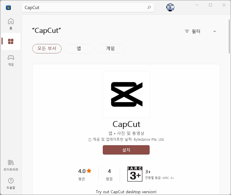 제가 캡컷(CapCut)을 마이크로소프트 스토어에서 설치할 수 있다고 오늘 포스팅을 통해서 설명하지만 '무조건 이 방법으로 따라서 설치하세요'는 아닙니다. 사이트에서 설치 파일을 받아서 설치하는 방법도 있으니까 어떤 방법으로 설치할 것인지는 여러분들이 선택하시면 됩니다.
