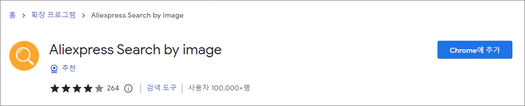 검색 결과에 Aliexpress Search by image 확장 프로그램을 클릭하면 설치할 수 있는 페이지로 이동됩니다. 오른쪽에 있는 Chrome에 추가 버튼을 클릭해서 브라우저에 추가를 해주세요.