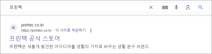 구글에서 검색어를 프린텍으로 입력하고 검색 결과를 확인합니다. 검색 결과 첫 번째로 프린텍 공식 사이트 링크가 나오는데요. 링크를 클릭하고 바로 사이트에 접속하세요.