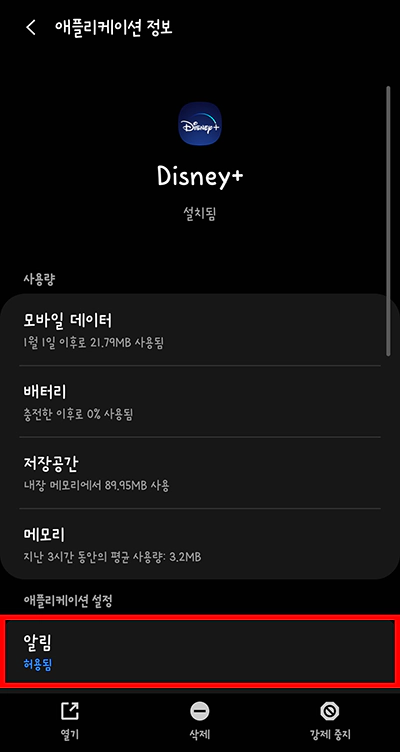 먼저 갤럭시 노트 9 기기에서 디즈니플러스 알림 해제하는 방법입니다. 스마트폰 설정에서 설치된 앱 목록 화면으로 이동하고 디즈니플러스를 찾으세요. 디즈니플러스 앱을 선택하시면 알림 설정을 변경할 수 있는 메뉴를 찾을 수 있습니다.