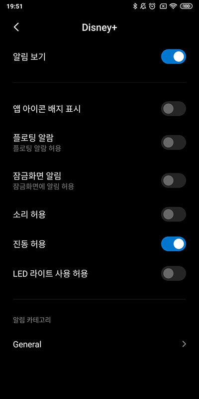 스마트폰 자체 설정에서 디즈니플러스 알림 설정 화면으로 이동하면 위와 같은 내용이 나오는데요. 갤럭시 노트 9 기기에서 보였던 설정보다 꽤나 많은 설정을 변경할 수 있다는 것을 확인할 수 있네요. 마찬가지로 디즈니플러스 앱에서 오는 모든 알림을 받고 싶지 않을 때에는 알림 보기 설정을 터치해서 비활성화해 주시고 소리나 진동이 오지 않게 하려면 소리 허용이나 진동 허용 설정을 변경하시면 됩니다. 왜 그런지 모르겠는데 추천 알림이나 광고 알림을 보내면서 앱 자체 설정에 알림 해제하는 기능을 지원하지 않는 앱은 디즈니플러스가 처음이 아닐까 싶네요.