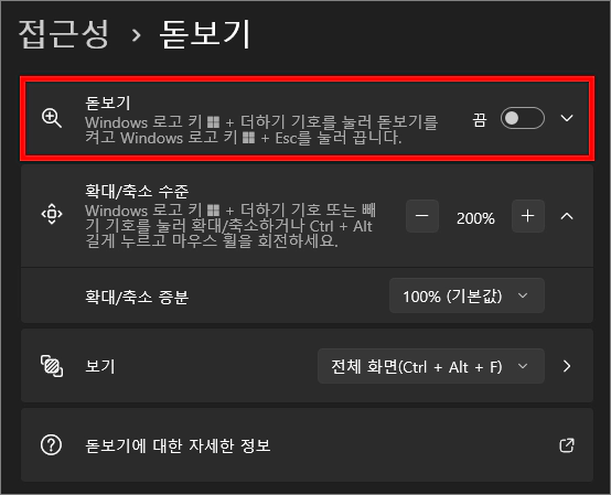 윈도우 돋보기 사용하기 키보드 편