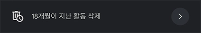 처음에 보여드린 캡처 이미지에서 2번으로 표시한 부분을 설명해 드리는데 기본값은 18개월이 지나면 활동 삭제가 된다고 표시되고 있죠. 글씨 부분을 터치하거나 오른쪽 동그라미 버튼을 터치해서 기간을 변경하시면 됩니다.