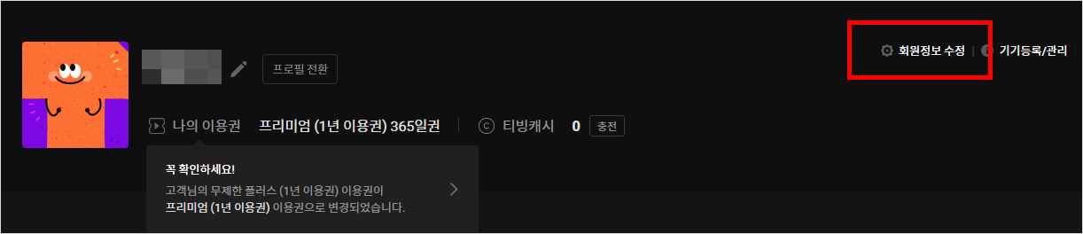 티빙 비밀번호 변경