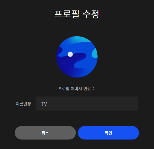 프로필 수정 페이지로 넘어왔는데... 아.. 이게 뭔가요? 이미지 변경, 이름 변경.. 현재 웨이브에서 제공하는 프로필 편집 기능은 이거밖에 없네요? 티빙, 넥플릭스, 왓챠 같은 스트리밍 서비스는 모두 프로필 잠금을 제공하는데 웨이브 프로필 잠금은 제공하지 않으니 사용할 수 없습니다. 현재는 아쉽게도 사용할 수 없지만 혹시 모르죠. 나중에 업데이트가 진행되면서 웨이브 프로필 잠금 기능을 사용할 수 있을지 모르니까요.